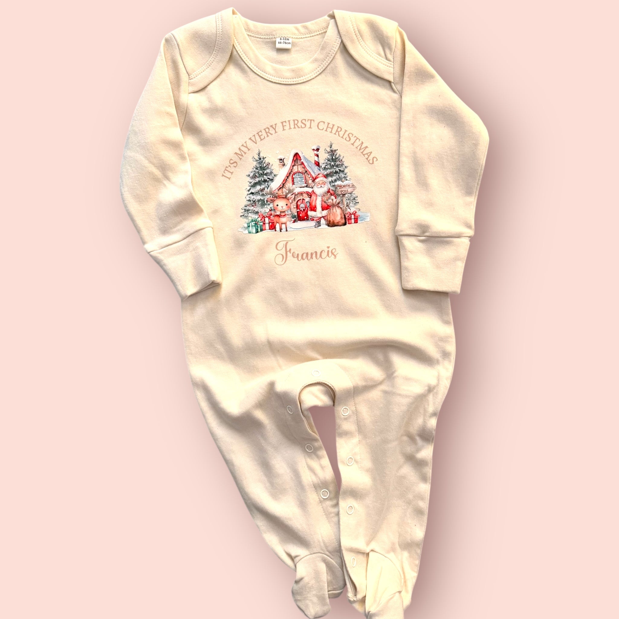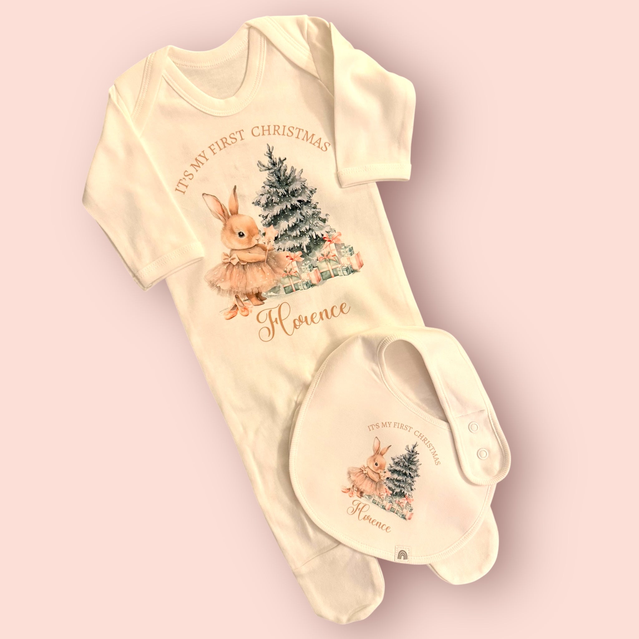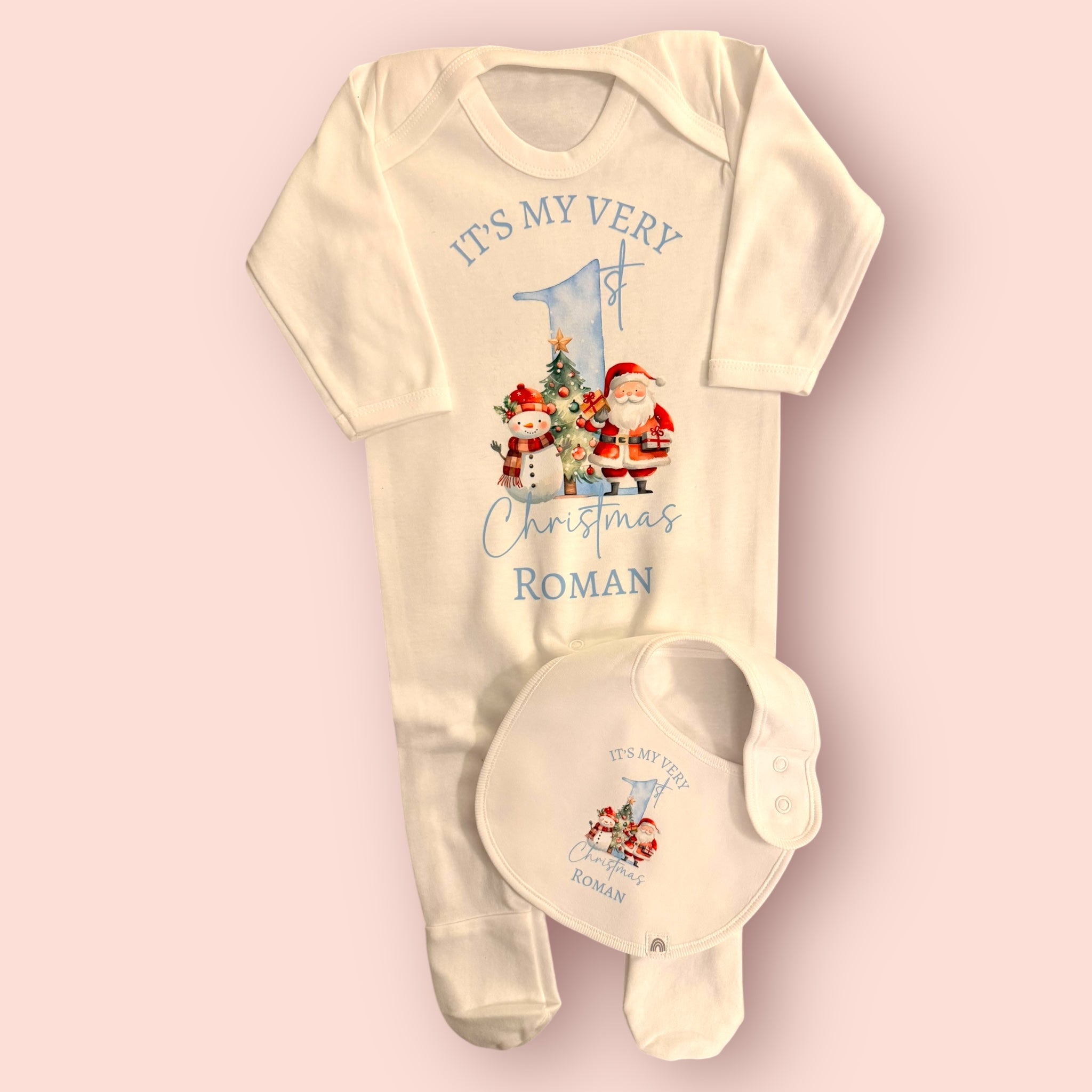 Beautiful 1st Christmas gift sets includes: Sack, sleepsuit, christmas decoration* and bib All items will be personalised with a name -...